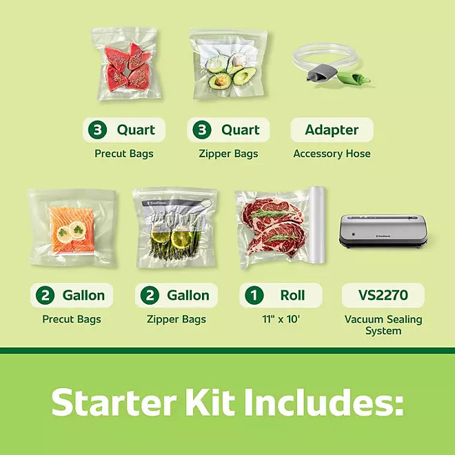 FoodSaver Preserve Vacuum Sealer, Special Value 14-Piece Starter Kit with Vacuum Seal Roll and Bags